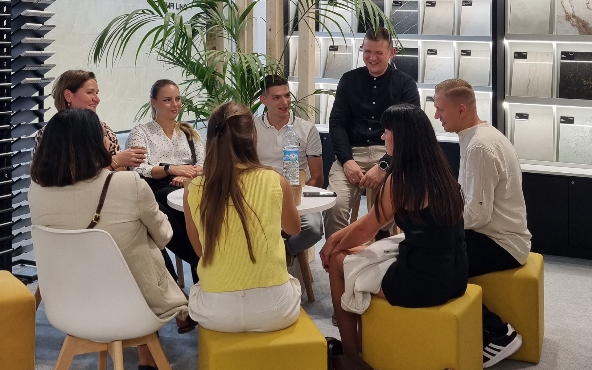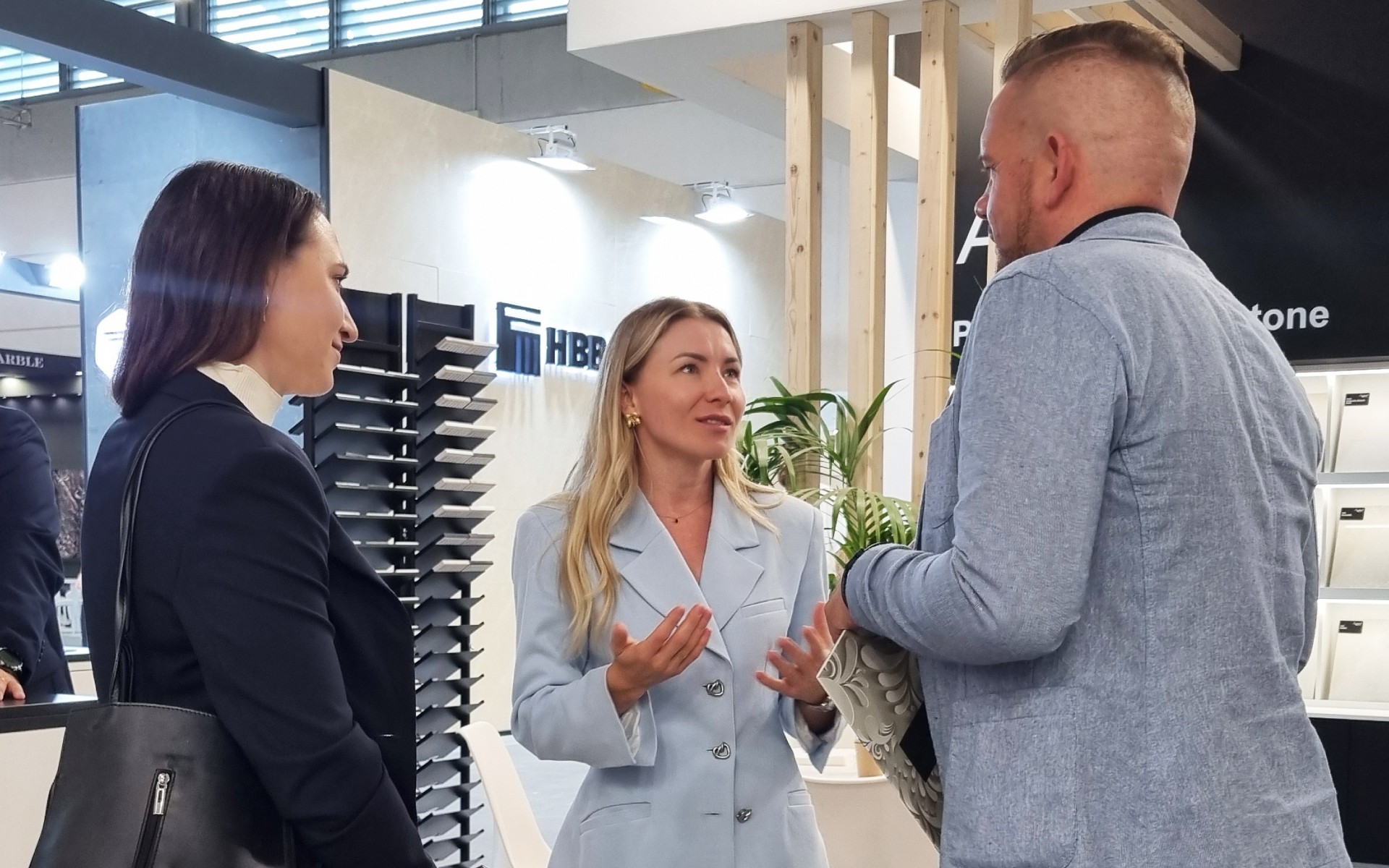 Frekwencja na naszym stoisku przerosła nasze oczekiwania. Dziękujemy wszystkim, którzy zatrzymali się na chwilę rozmowy, obejrzeli nasze materiały i podzielili się swoimi spostrzeżeniami. A było Was mnóstwo! Rozmawialiśmy o właściwościach materiałów, porównywaliśmy kamień naturalny z jego zamiennikami, dyskutowaliśmy o tym, jak technologia druku 3D może wpłynąć na kwestie wzornictwa, zwłaszcza w kontekście powtarzalności wzoru i możliwości personalizacji płyt, co szczególnie cenią współcześni klienci. Nasze stoisko wyróżniało się przede wszystkim atrakcyjną formą prezentacji materiałów. Odwiedzający chętnie zatrzymywali się, aby obejrzeć je na żywo, dotknąć płyt, sprawdzić fakturę i wykończenie. Zainteresowanie nowymi technologiami i proekologicznymi rozwiązaniami potwierdza, że rynek projektowania wnętrz i kamieniarstwa stawia dziś na innowacje oraz wybory, które nie szkodzą środowisku naturalnemu.