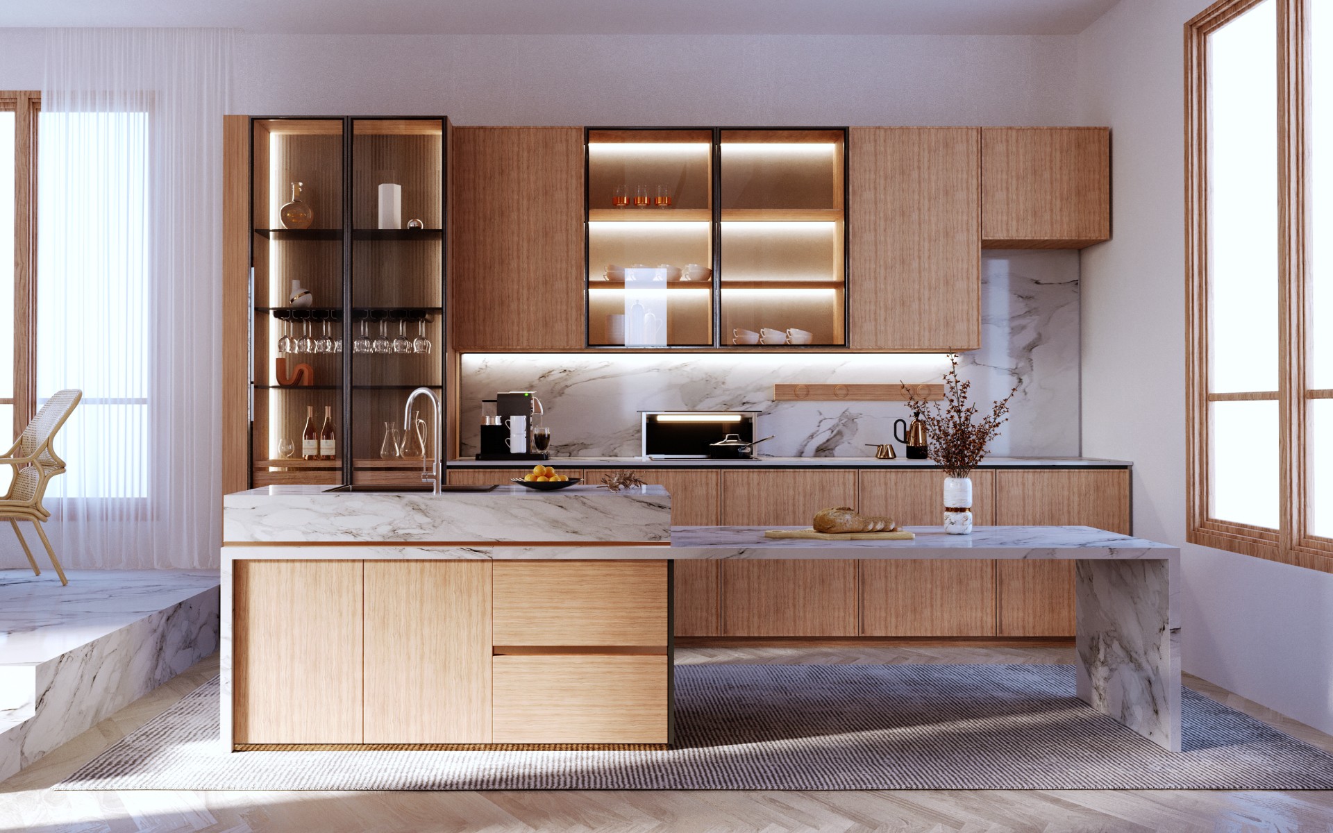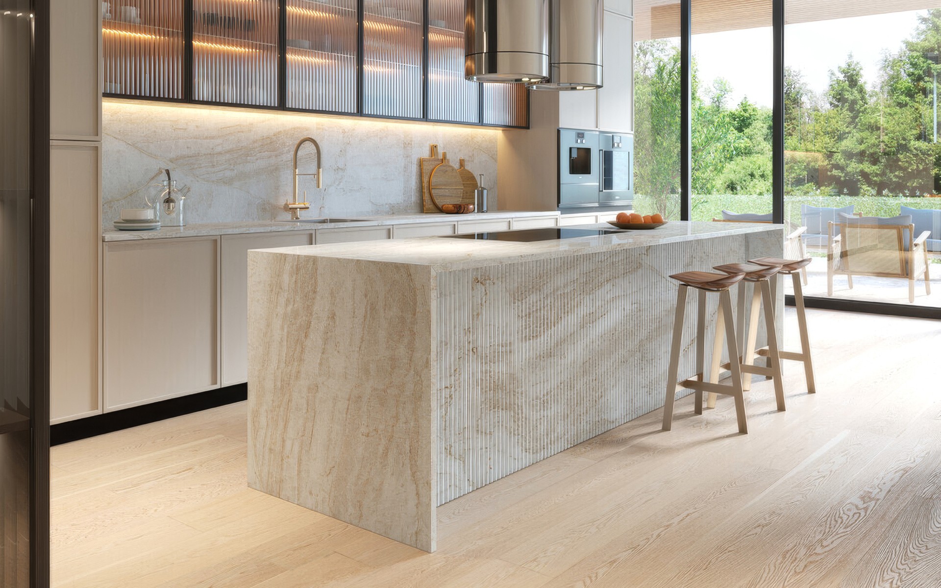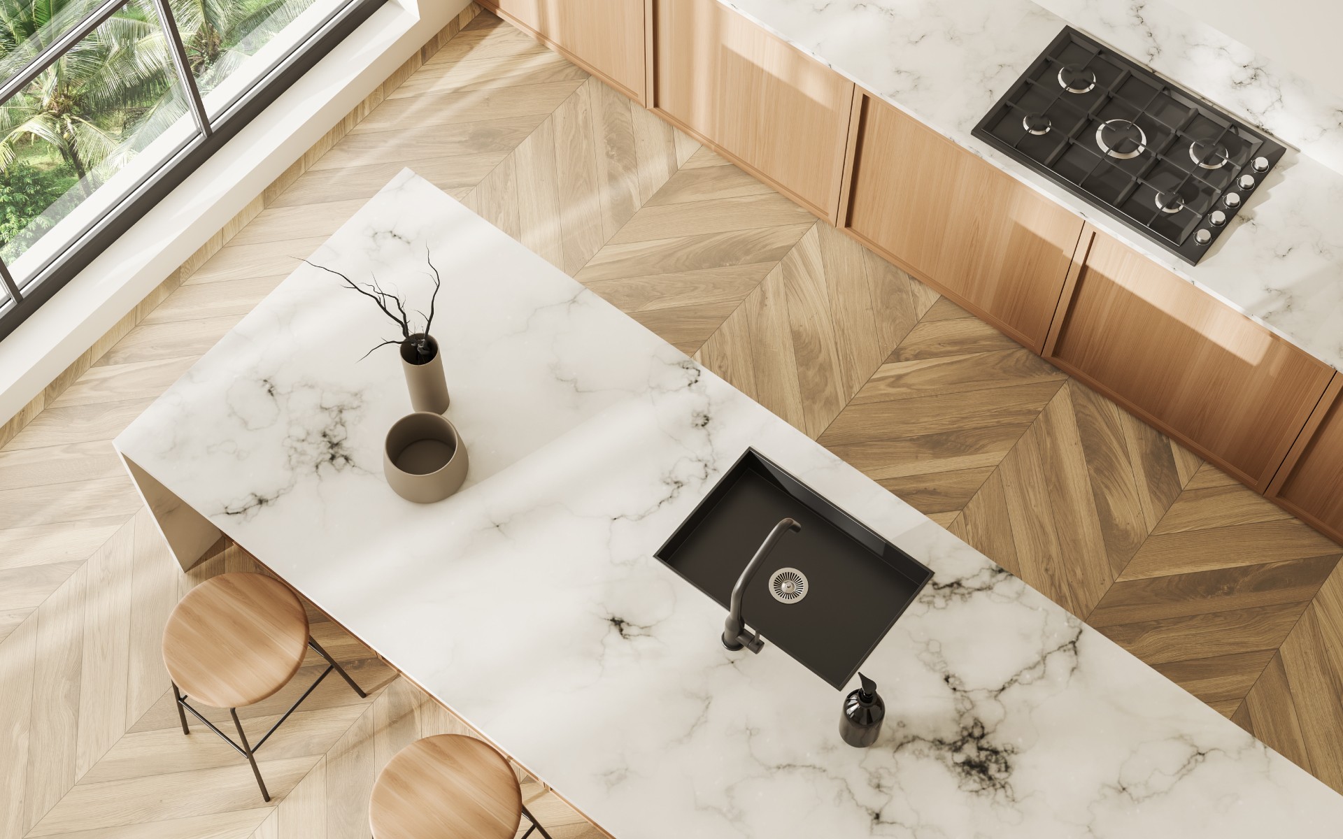 Marble in the kitchen is beautiful, noble and associated with luxury, but it requires awareness that it is not a ‘maintenance-free’ stone. Its surface is more delicate than granite or quartzite, sensitive to acids and scratches, so it works best on less intensively used or decorative surfaces, such as wall cladding, kitchen island casings or decorative panels. In kitchens where marble plays a major role, regular impregnation and maintenance, as well as quick response to dirt, are crucial.