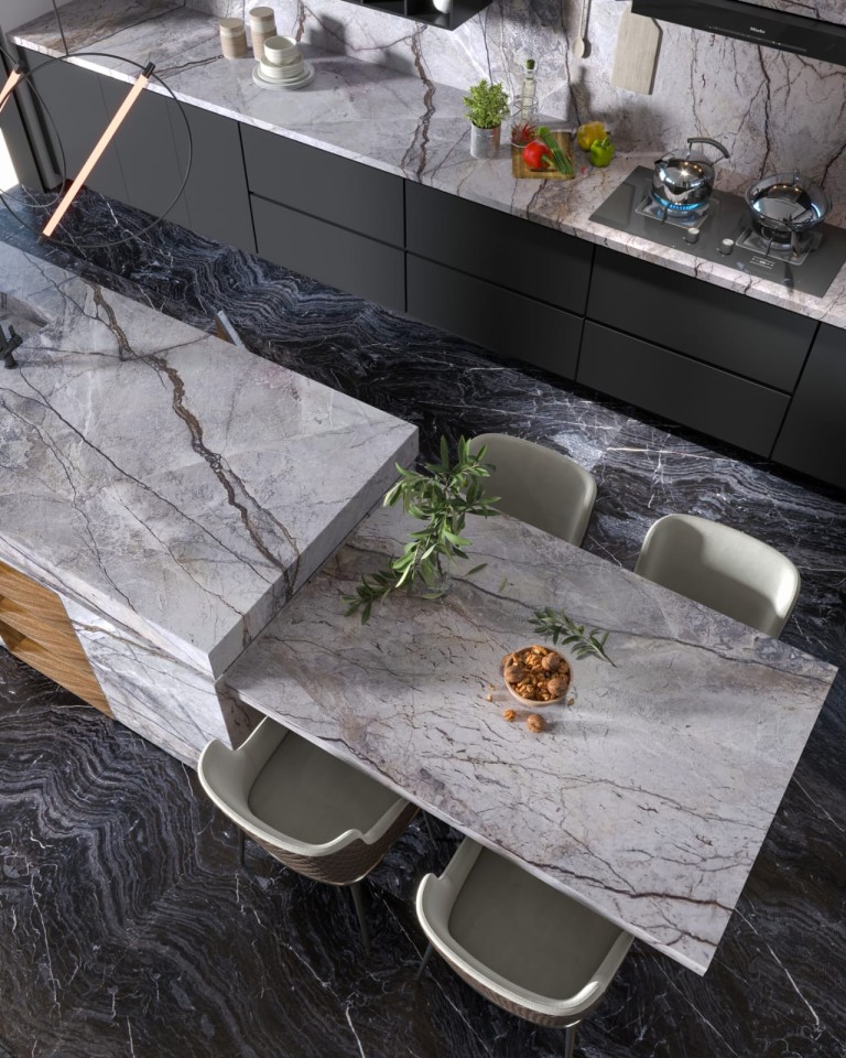 - Unique aesthetics – marble has symbolized luxury and elegance for centuries, granite gives interiors a modern, minimalist character, while onyx and travertine captivate with their unique patterns and textures.